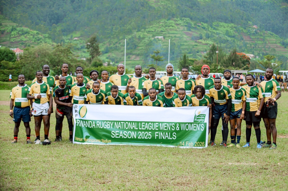 1000 Hills Rugby Club were crowned men’s National 15s champions after edging Lions de Fer 20–15 in a thrilling final at Nyirangarama Stadium in Rulindo District on Saturday, February 14. The former champions had to fight back after trailing 7–3 in the first half. They returned from the break with renewed intensity, overturning the deficit to dethrone Lions de Fer who had won the trophy in the past five consecutive times. It was also the first trophy for 1000 Hills since 2019. The team is enjoying an exceptional return to Rwandan league since being cleared to compete in all local competitions again after a season-long ban. The rugby federation had requested the club to fulfil documents required to become a member. “We weren’t able to compete in the league due to the ban but 1000 Hills is always a good team. Even during the ban, we kept training and it helped us a lot when we resumed competitions,” said club captain Fabrice Mwenedata. “We are so excited to win this trophy. We way better physically today and I think that’s what made the different in the final,” he added. In the third-place playoff, Gitisi TSS delivered a dominant performance, thrashing Kigali Sharks RFC 51–7 to secure bronze. Then 1000 Hills Women’s Rugby Team completed a memorable double for the club with a commanding 41–19 victory over Ruhango Zebras to lift the women’s championship at the same venue while Kamonyi Panthers claimed third place after defeating Burera Tigers RFC 13–0. Rwanda Rugby Federation president Tharcisse Kamanda commended the teams for raising the level of competition and bringing balance to the tournament. “Look at this final, for instance, there was just a five-goal difference, which is quite not big. So it is giving us reason for optimism about our sport,” Kamanda said. The national 15s championship brought together 11 men’s teams and six women’s teams.