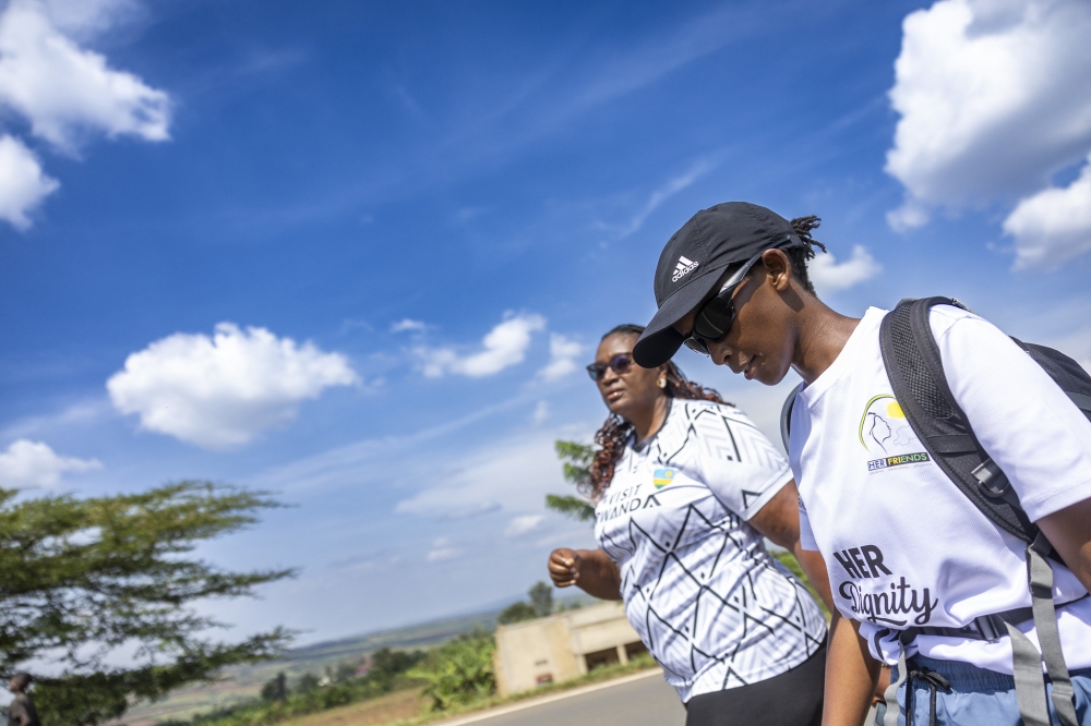 Actress Rosine Bazongere was recieved by Vice-Mayor of Nyagatare District Juliet Murekatete, as she concludes her four day 160Km walk Campaign in Nyagatare District on Sunday, February 16. Photos by Olivier Mugwiza