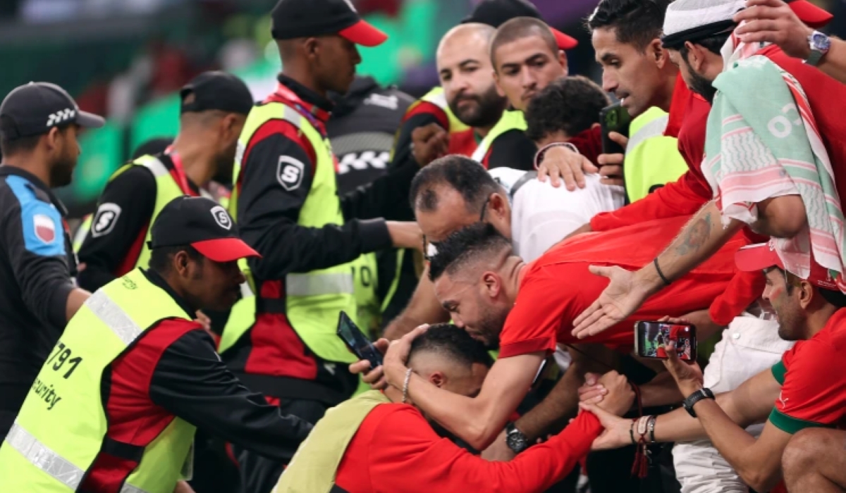 Doha, Qatar – The anticipation built up as Achraf Hakimi stepped forward to take a penalty that could rewrite Morocco’s footballing history. The teams were inseparable after 120 minutes. As Hakimi got hold of the ball, Morocco had the upper hand with the penalties despite the Spanish crowd trying its best to distract the penalty-takers from behind the goal with camera flashes. Morocco had scored two. Spain had missed two. If Hakimi put this one in the back of the net, Morocco were through to their first World Cup quarter-final. The crowd was up on its feet, some standing on the seats. Nobody was sitting except in the press box and VIP area. Moroccan substitutes gathered the flags that the crowd has thrown to them. Celebrations were reaching a boiling point. It could happen at any moment. The nine by the centre circle pulled each other closer. Their grip was tight. Their hearts were beating faster. The finish line was in sight, the victory was theirs. Hakimi marked his run-up. If he scored, his country of birth was out of the World Cup. He scored. The sea of red erupted and Morocco stepped into unchartered territory. They are in a World Cup quarter-final for the first time after six attempts. “It’s all the happiness of the world combined in this result. We’re all so, so, so happy,” a group of Moroccan fans at Education City Stadium shouted at the top of their lungs after the match ended. “We were always confident of a win. Because we’re from Morocco. We’re lions,” Iman, originally from Casablanca but living in Qatar, said, referring to the team’s nickname Atlas Lions. The celebrations moved onto the foyer, then the stairs and then finally onto the outer perimeters of the stadium. But the Moroccan crowd was not done yet. Honking cars, waving flags, singing and shouting, relived but rapturous, brimming with sheer ecstasy and in a frenzy, they danced on. “I’m so, so proud to be Moroccan right now, wow, wow, wow. It’s amazing, it’s the best feeling in the world right now,” Khadija said. “I can’t wait for the next match. We’re staying in Qatar. We’re not going home.” Spotted in the sea of Moroccan supporters were some Spain fans who were quietly making their way out of the stadium. “Espana, Espana, this is the way to the airport, Espana,” taunted a group of Moroccan fans before hugging their Spanish counterparts. For Firdous, she has a flight back to Morocco on Thursday morning. But she said she will be back for the quarter-final on Saturday. “This is huge, it’s massive,” said Firdous. “This is an accomplishment that Morocco has never achieved. We’ve been waiting for this our entire lives. This is just the beginning. We’re going all the way. “This morning, I knew we have something special in store for us today. And this is it. I’ve watched all of Morocco’s matches in the World Cup. Tomorrow, I’m going back to Morocco but I’ll come back for the next match. This is a sacrifice I’m willing to make for the team.” Mohammad Karam, who could barely talk after enjoying the “match of his life”, could not believe what had transpired on the field. “I still can’t believe it. I’m dreaming. It was a lot of nerves, a lot of tension, a lot of emotions. But we did it. We’re in the quarter-finals.”
