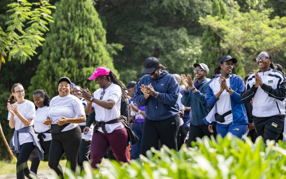 First Lady Jeannette Kagame joins women and residents during Kigali Car Free Day mass sports on Sunday, March 8, as Rwanda marks International Women’s Day under the theme “Empowered Women, Stronger Nation.” Courtesy