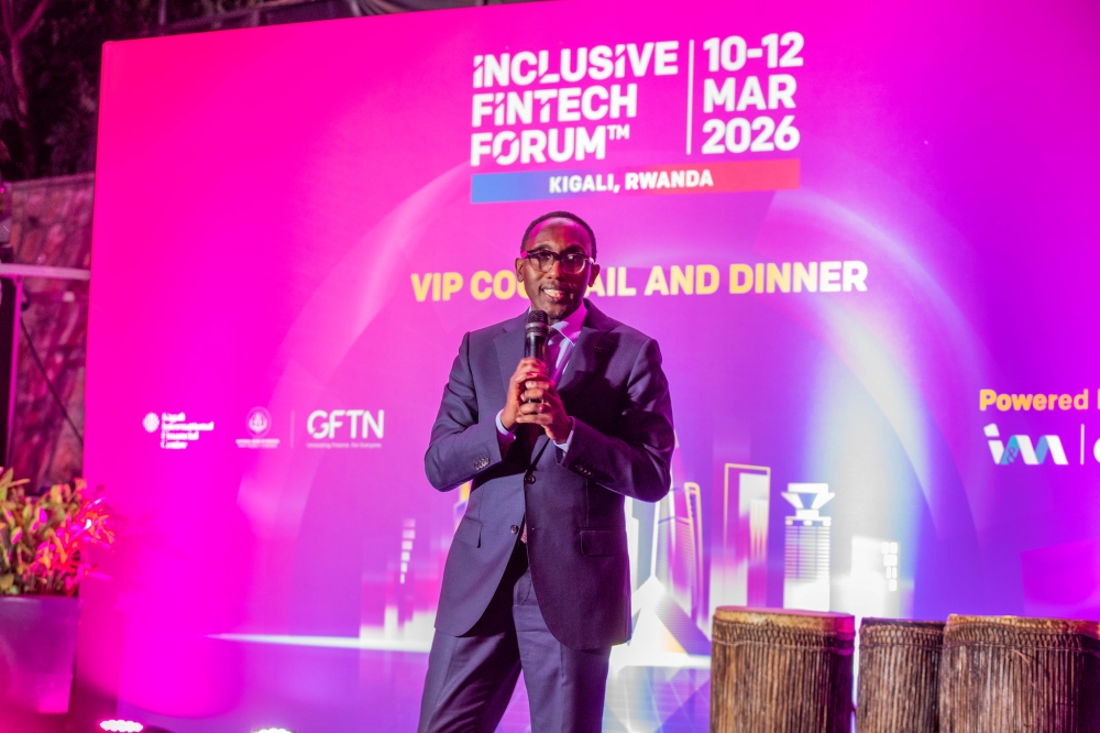 Benjamin Mutimura, Chief Executive Officer of I&M Bank Rwanda, addresses participants who attended a VIP cocktail and gala dinner organised by the Kigali International Financial Centre and sponsored by I&M Bank Rwanda. Photos by Craish BAHIZI