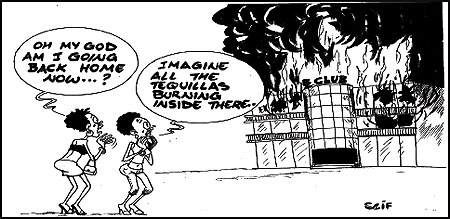 B-Club Discotheque located in the upscale Nyarutarama area in Gasabo District, was yesterday left in total ruins after a fire broke out and destroyed the entire second floor of KL House where the nightclub is located