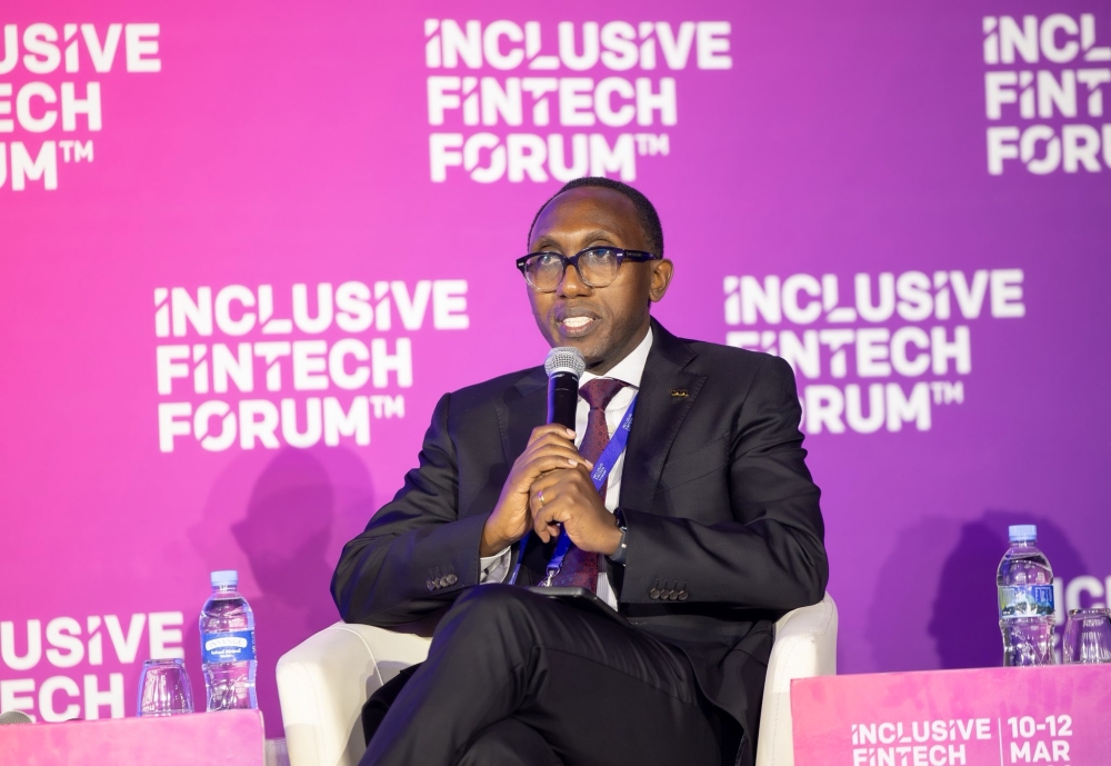 The Chief Executive Officer of I&M Bank Rwanda, Benjamin Mutimura, speaks during a panel discussion at the Inclusive Fintech Forum (IFF) 2026 in Kigali