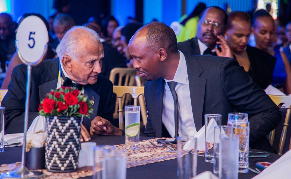 Minister of Health Dr Sabin Nsanzimana interacts with the Founder of Rotary Club Kigali Virunga, Cally Alles Joseph at the Silver Jubilee celebration held on March 28 at the Radisson Blu Hotel and Kigali Convention Centre. All photos by Craish BAHIZI