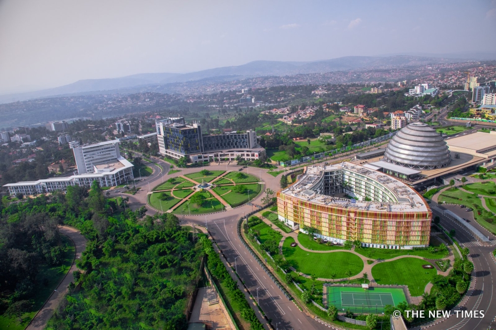 Aerial view of Kimihurura, Kigali’s premium district. Kimihurura is now home to key landmarks such as the Kigali Convention Centre, Radisson Blu Hotel, Kigali Heights, Fair View, and the Career Center Building among others. File