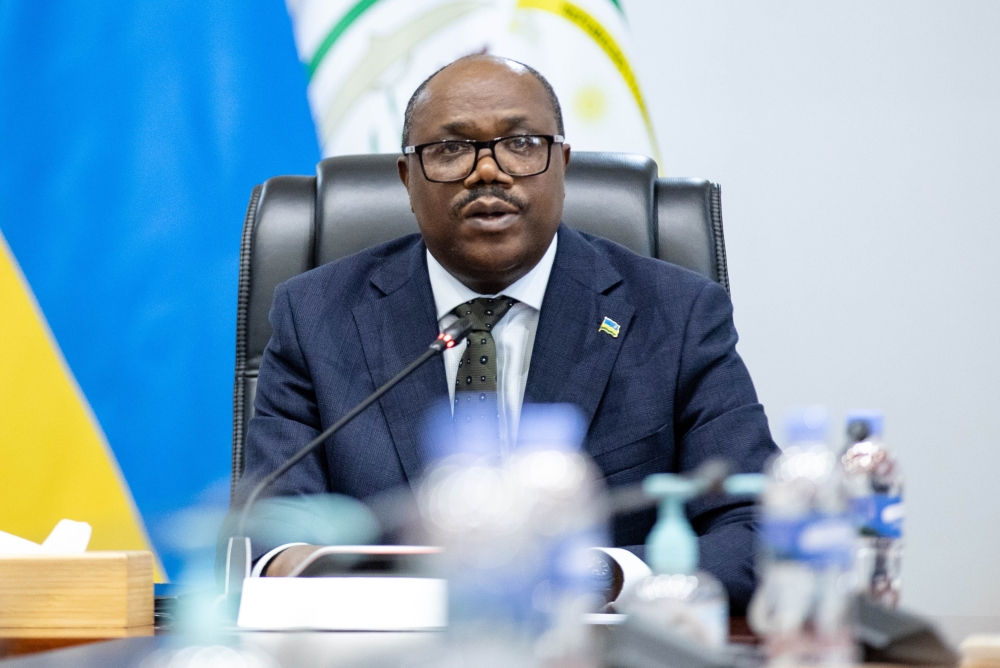 Prime Minister Justin Nsengiyumva briefs the media on Friday, April 3. PM spoke about Rwanda’s current economic situation, the impact of the Middle East conflict, and the measures being taken to address and mitigate the effects of global shocks. All photos by Dan Gatsinzi