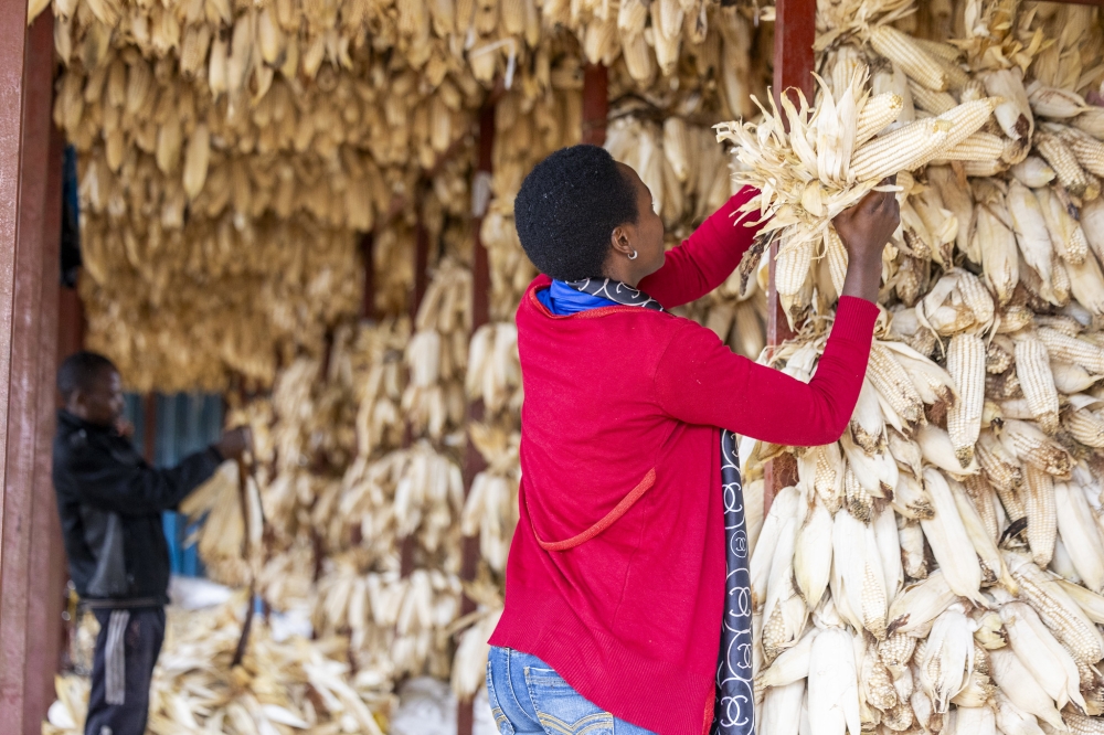 Farmers dry their maize harvest at a collection centre in Gatsibo District on February 19. Photo by Olivier Mugwiza.