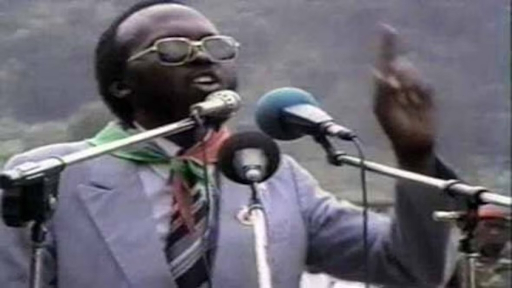 Dr. Léon Mugesera delivers a hate speech at Kabaya in the former Gisenyi Prefecture on November 22, 1992, ahead of the 1994 Genocide against the Tutsi. File