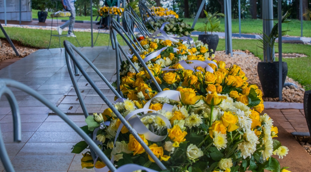 Wreaths laid at Kicukiro-Nyanza Genocide Memorial in honour of victims of the Genocide against the Tutsi during a commemoration event on Saaturday, April 11. Photo by Craish BAHIZI