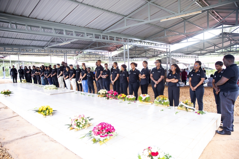 Staff of Reportage Properties Rwanda, observe a moment of silence to honour the victims of the Genocide against the Tutsi at Kicukiro-Nyanza Genocide Memorial on on April 10. Photos by Emmanuel Dushimimana