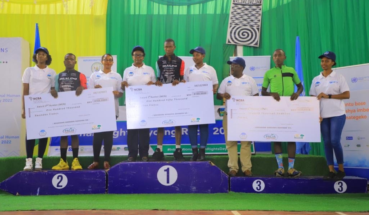 Riders Espoir Uhiriwe and Djazilla Mwamikazi were Saturday, December 10, crowned champions of the Human Rights race held in Gisagara, Southern Province. The race is organized annually by Gisagara District in partnership with Rwanda Cycling Federation as part of the celebration of the International Human Rights Day. This year’s race was held under the theme ‘sports is a human right’ and only brought together junior riders, male and female, from over 10 cycling teams. Uhiriwe, a cycling prospect who rides for Nyabihu Cycling Team, won gold in the men juniors’ race after clocking two hours 15 minutes and 30 seconds (2h15'30) in 77.4km. He overcame stiff competition from Nyabihu Cycling Team’s Phocas Nshimiyimana and Emmanuel Niyonkuru of Kayonza Young Stars who gave him a hard time in the last kilometer of the race which was shaped by a sprint that ended with the trio reaching the finish line with the same time only for the photo finish to decide Uhiriwe as the winner of the race. Meanwhile, Mwamikazi of Les Amis Sportifs won the women juniors race after covering the same distance (77.4km) in two hours 36 minutes and 34 seconds (2h36'34). She won the race in a comfortable manner as Charlotte Iragena of Bugesera Cycling Team reached the finish line 21 second later while Iragena’s teammate Aline Uwera completed the podium with 2 minutes 49 seconds behind the winner. The champions in men and women categories were each give cash prizes worth Rwf150,000 while the first runners-up walked away with Rwf100,000. The second runners-up took home Rwf80,000 each.