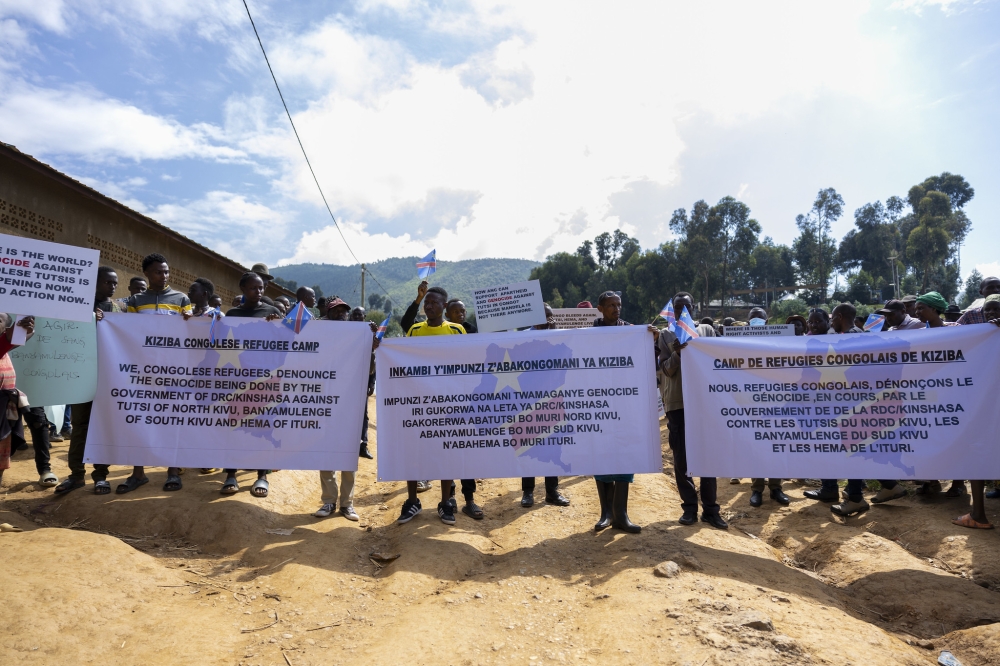 Congolese refugees from Kiziba Camp in Rwanda take part in a peaceful march calling for action to stop killings targeting Tutsi communities in the Democratic Republic of the Congo. (File Photo)