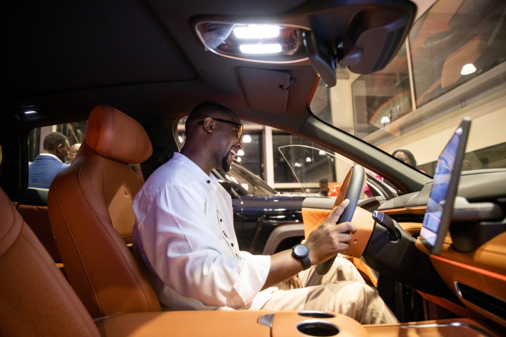 A client tests a new electric car at a showroom in Kicukiro, Kigali. Photo by Craish Bahizi.
