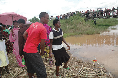 Residents of Ruhuha paying tribute to victims thrown in River Nyabarongo during the genocide. (Photo/ J Mbanda)