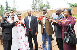 Mayor Jules Ndamage cutting the ribbon to launch the construction of the 2km road at Niboye junction yesterday. (Photo / F. Goodman)