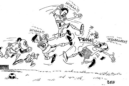 Players of TP Mazembe were involved in a fight during a football match at Amahoro Stadium, yesterday.