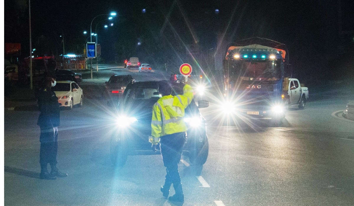 Rwanda National Police's traffic police officers on duty in Kigali.Police announced that 71 people were arrested for driving under the influence of alcohol over the past four days. Photo by Craish Bahizi