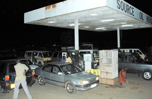 Motorists queue for fuel at Source Oil Meridien near Hotel Novotel Umubano last evening as several petrol stations around the city were overwhelmed by buyers while a number of them ran out of supplies. (Photo/G. Barya)