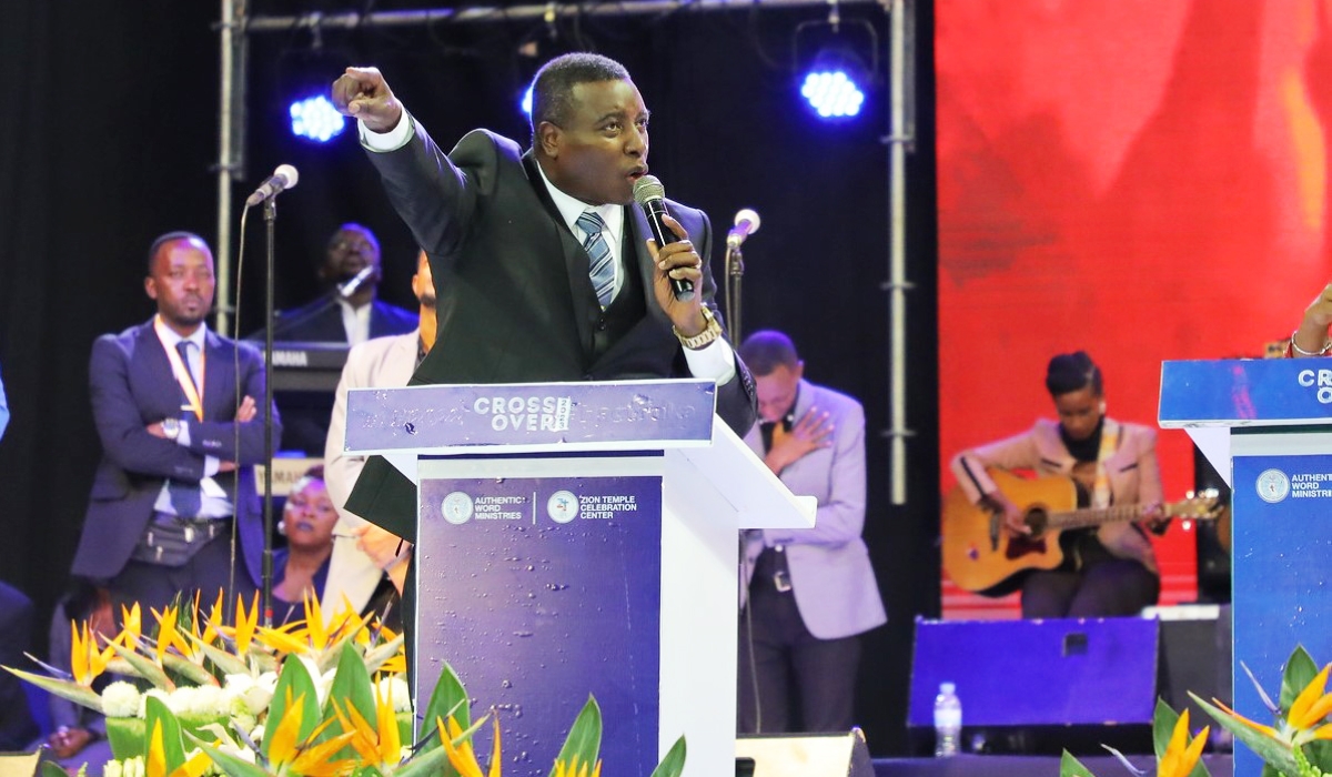 Apostle Paul Gitwaza, the Senior Pastor of Zion Temple Celebration Center delivers preaching as he leads a mass gathering of praise and worship at the BK Arena on New Year's eve. All Photos by Dan Kwizera