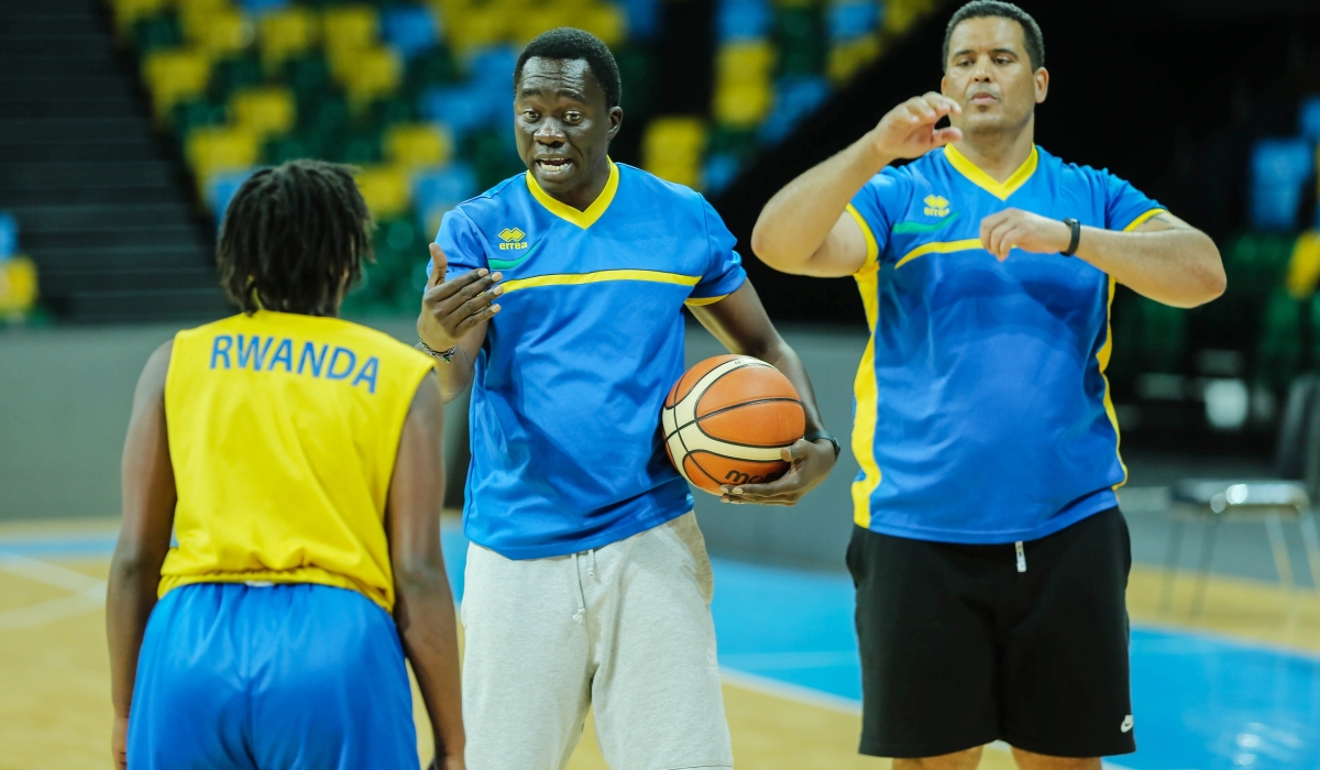 The national women basketball head coach Cheikh Sarr during a training session . Coach, Cheikh Sarr, has summoned a 17-woman provisional roster of only local players to start preparations. File