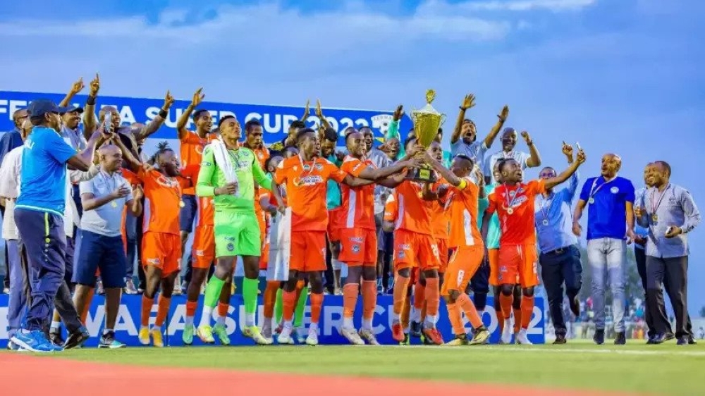 AS Kigali players anad staff celebrate the victory after winning Super Cup 2022 title on Sunday at Kigali Stadium. Head Coach Andre Casa Mbungo says his side’s major target in the season is to win the Rwanda premier league. / File