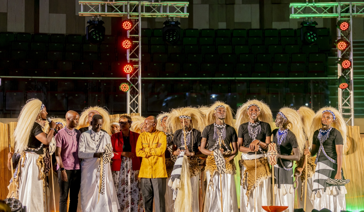 It was a night filled with so much energy and excitement when Ibihame by' Imana alongside Ruti Joel and Impakanizi entertained a sold out concert at Kigali Convention center on January 14. Dubbed 'Rurasugiye,' the performances consisted of two phases that were both performed by this all-men dance troop that blessed revelers who attended with a lifetime experience and memories of how rich Rwanda's traditional dance really is. The performance by Ibihame for phase one kicked off around 7:45pm with a play of a family that had a young boy who would soon join the country's army to protect it from enemies and any attack. He was guided by his grandfather on what he should do to make his country proud and be great on the battlefield. The play continued to juniors of Ibihame by'Imana who swore an oath as they were officially made part of Ibihame by'Imana. Before the swearing they danced 'Imihamirizo' in front of the elder leader to prove that they are skilled and deserve to be part of the troupe. The dancers did not only prove to their leader but also to the guests who were enjoying these talented dancers that were beaming with smiles. When the emcee announced that Ruti Joel was the next performer the guests couldn't hide their excitement and then decided to sing from their seats as they waited for Ruti to start doing what he does best. Ruti has a way of bringing good vibes in the room without even forcing it. Coming up on stage while singing his famous single 'Intore' brought a whole different vibe into the full packed hall. I want to thank you all for the love you are showing to my new album 'Musomandera.' Meanwhile I am going to sing some of the songs on the album, he said. Performing some of his songs like 'Cunda', 'Amariza' and 'Ni Yesu' by Buravan among others were all welcomed by the revellers who were stunned by Ruti's talent and stage prsence. Impakanizi was welcomed on stage and revelers were ready for him. As he stepped on stage singing in his breathtaking voice everyone quietly paid attention to capture the sensational and sweet moment. His voice uniquely represents talent with so much ease and yet gives you chills everywhere when listening to him. Upon performing his last song he was joined by Ruti and then were joined by the kids who had been longing to join them on stage. Ibihame by'Imana coming up on stage for the second phase things took a turn in a blink of an eye. First came young kids who looked like they have been dancing since they were born. The audience watched on with both shock and excitement as the kids danced perfectly with so much energy, smiles while making it look so easy. Ibihame by'Imana then gave revellers what they came for. It was undeniably an epic performance as they danced in unison. As they danced the choreography was dominated by outstanding footwork that made the room shake. You could hear the echoes of laughter in the room as they kept dancing and fans were wowed by the amazing, eye catching breathtaking performance. The troupe thanked the pioneers who founded the troupe and taught them what they know. It was founded in 2013, by Aimable Bahizi, Olivier Burigo and Emery Igihangange, who were famed dancers from Indahemuka and Imena troupes back in the ‘90s. Before wrapping up the concert, they called the late Buravan's family to come on stage. Buravan was one of us and if he was still here, tonight we would have been with him because he was 'Intore' and he loved our culture and mostly dancing was his favourite. We want to honour him tonight by giving you an attire that is usually worn by Ibihame by'Imana while we dance, said one member of Ibihame by'Imana. After taking a photo with Buravan's family they thanked everyone for coming through and concluded with a prayer.
