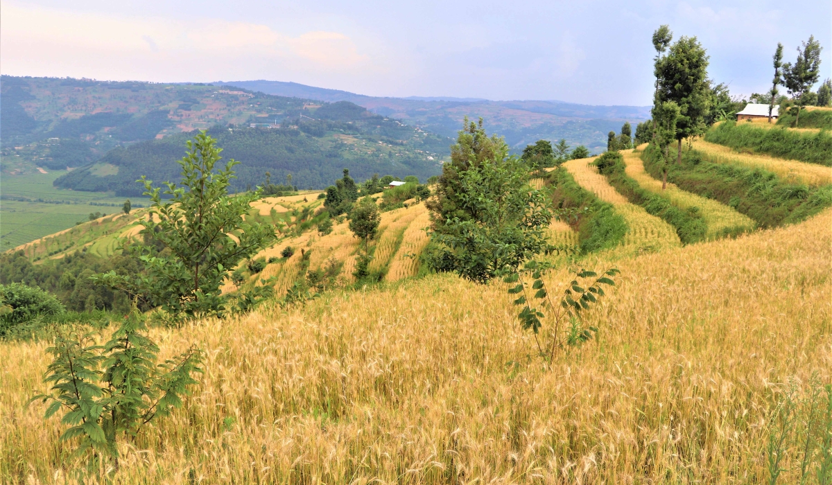 A wheat plantation at Green Gicumbi Project . Through this project, at least 12, 000 hectares of land are under erosion control (with both 600 hectares of Radical terraces and 600 hectares of progressive and radical terraces) over the past three years
