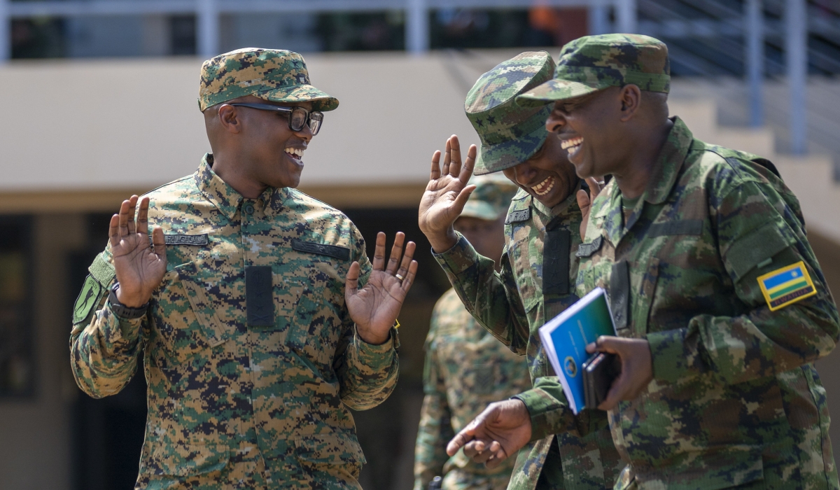 RDF officers chat about the game, after the Republican Guard team beat Special Operation Forces 2-1 to win the RDF Inter Force Competition 2022-2023 title at Bugesera Stadium on January 31. Photo by Olivier Mugwiza