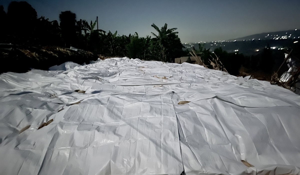 Heaps of hervested maize belonging to the Gasagara farmers’ cooperative covered for protection from rain near the shelter that collapse in Rusororo Sector, Gasabo District, on February 3, 2023 (Emmanuel Ntirenganya).