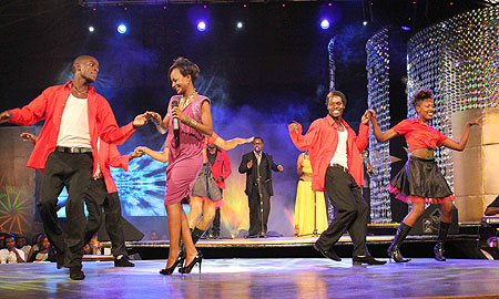 Rwandan beauty Gaelle (2ndL) takes the audience by storm.