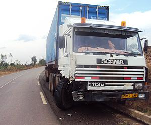 One of the trailers that was involved in an accident along the Kigali-Kayonza road last year.( File photo)