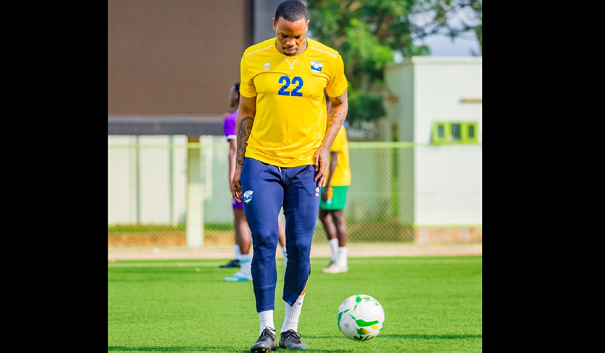 Amavubi defender Abdul Rwatubyaye during a training session with Amavubi on Monday.