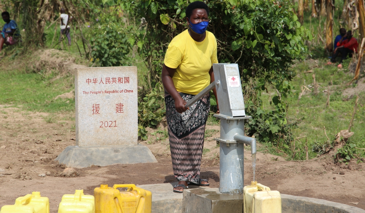 A woman fetching water at a borehole in Kirehe.Currently nearly 420 million Africans still lack basic drinking water today, or one in three inhabitants and 780 million people. Craish Bahizi