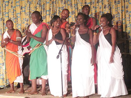 Intwari dancers did backup performances for Dr. Gaspard Ntahonkiriye.