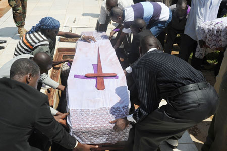 Relatives giving decent burial to the Genocide victims at Nyanza, Kicukiro (Photo T.Kisambira).