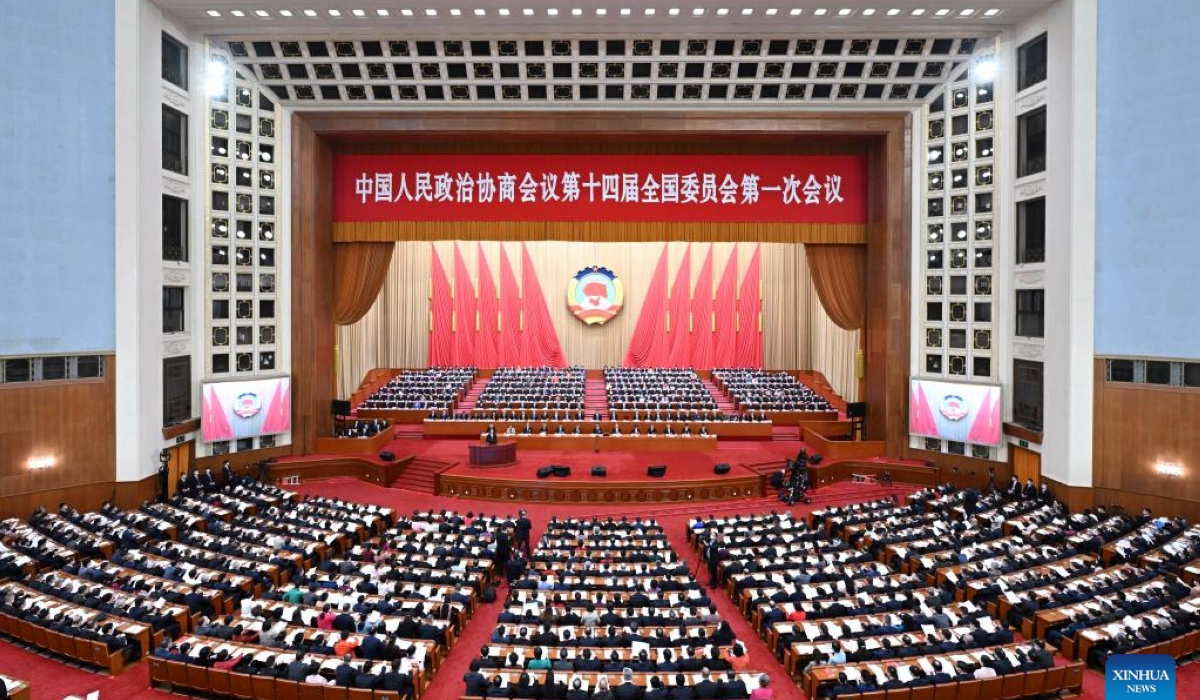 The opening meeting of the first session of the 14th National Committee of the Chinese People's Political Consultative Conference (CPPCC) is held at the Great Hall of the People in Beijing, the capital of China, March 4, 2023. (Xinhua/Zhai Jianlan)