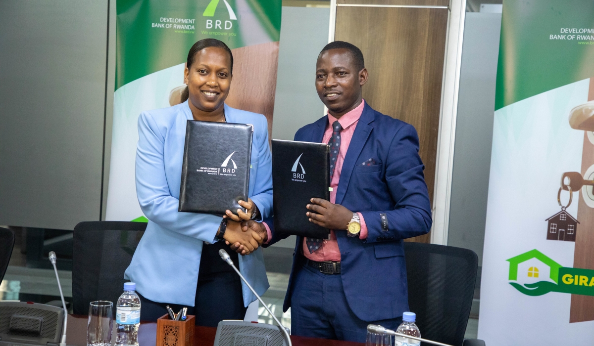 Development Bank of Rwanda (BRD) has signed a partnership with Umwalimu SACCO under the ‘Gira Iwawe’ project which is expected to give educators access to a greater selection of financing solutions to meet their requirements and budgets, as well as a streamlined and quick mortgage application process with low-interest rates, long repayment time, and low fees. ‘Gira Iwawe’ is a housing finance project that provides affordable mortgages to individuals over 18 and families that want to own their own homes. The partnership worth Rwf 20 bn was officially signed on Monday, March 13 at BRD headquarters and is expected to benefit 1,900 teachers. Speaking at the signing ceremony, Pitchette Kampeta Sayinzoga, CEO of BRD, said this is in line with the government’s agenda to assure teachers’ well-being, adding that ‘Giriwawe’ is a project of the government and the World Bank. Kampeta emphasised that this is just the beginning and BRD will always be there to support teachers’ development in general. Regarding the timeline of the partnership, she said, “The partnership is here to stay as long as teachers need BRD’s intervention,” she said adding, “We are here to address the development needs of the country, and teachers are the primary market for us because that we know the impact they have on social economic development.” Chairman of the Board of Directors of Umwalimu SACCO, Gaspard Hakizimana, commended BRD for the partnership saying that this will help a great number of teachers own houses. On her part, the director general of Umwalimu, Laurence Uwambaje, noted that the Gira Iwawe-Umwalimu partnership comes at the right time. “The cooperative and its partners were devising strategies to ensure affordable mortgage loans to its members, especially teachers, by offering the lowest interest rate and longer repayment period to suit members’ specific needs and budgets,” she said. Uwambaje pointed out that they used to provide mortgage loans to cooperative members with a 12-year maximum repayment period and an 11 per cent interest rate depending on the requested amount. “With ‘Gira Iwawe’ project, we will be able to increase the maximum repayment period from 12 years to over 15 years, and it will be given at a rate of 11 per cent, hence being less costly and providing affordable instalments to members,” she added. Furthermore, Uwambaje said that Umwalimu Sacco has branches countrywide and they are confident that this partnership will serve as a significant step in providing Rwandan educators with the best possible mortgage loan for decent shelter. Umwalimu will join five other commercial banks in offering ‘Gira Iwawe’ mortgage loans to their customers, including Bank of Kigali, Bank of Africa, BPR, NCBA Bank Rwanda Plc, and Zigama CSS.