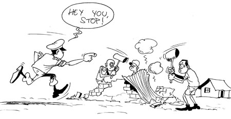 Police in Gicumbi Thursday arrested three men for allegedly destroying a house belonging to a local resident, suspected to be a whistleblower
