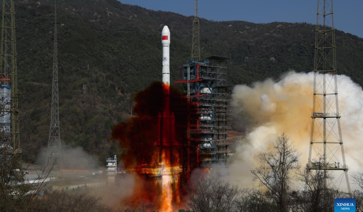 A Long March-3B carrier rocket carrying the Gaofen-13 02, a new Earth observation satellite, blasts off from the Xichang Satellite Launch Center in southwest China's Sichuan Province, on March 17, 2023. The satellite will be mainly used in land surveys, crop yield estimation, environmental governance, meteorological early warning and forecasting, as well as comprehensive disaster prevention and mitigation. (Photo by Ying Longfei/Xinhua)