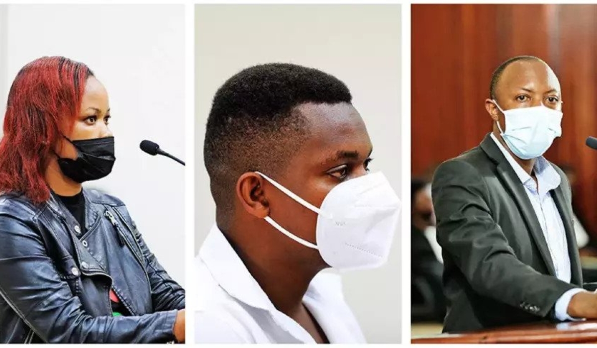 Alice Kayitesi, a survivor of the Nyungwe attack, Vianney Bwimba,a victim of Nyungwe and Vincent Nsengiyumva ,the former Nyabimata Executive Secretary, victim of Nyabimata attacks in court. File