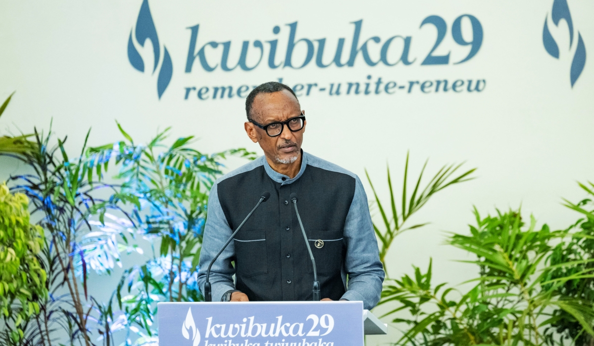 President Paul Kagame said there is no hiding place from historical facts of the Genocide, even for those who want to distort them. Kagame shared the message while speaking at the Kigali Genocide Memorial as the country started the 29th commemoration of the 1994 Genocide against the Tutsi. Every year on April 7, Rwandans and friends of Rwanda come together to honor the more than a million innocent lives lost within just 100 days. ALSO READ: April 7, 1994: What really happened on the day killings unfolded? Joined by different government officials, members of civil society, members of diplomatic corps, and friends of Rwanda, Kagame and First Lady Jeannette Kagame laid a wreath and observed a minute of silence in commemoration of Genocide victims. Jean Damascene Bizimana, Minister of National Unity and Civic Engagement, went through the history from colonial times that led up to the planning and execution of the Genocide, with killings starting as early as in 1959. He explained how the genocidal government carried out a process of recruiting young Rwandans to train them in military under what was called ‘Civilian self-defense’ in 1991, who were meant to be ‘Interahamwe’ executing the carefully planned Genocide. Bizimana noted that Rwanda is still battling effects of Genocide ideology, even traceable in the Great Lakes Region. “Genocide ideology is still lingering in the region. FDLR genocidal militia has not yet been eradicated, the Congolese government supports hatred and killings of Congolese Tutsi,” Bizimana said. ALSO READ: Youth leaders call for fight against genocide ideology Kagame said that from the facts shared by Bizimana and personal testimony of Eric Mwizerwa - a genocide survivor-, the truth of the matter is what has always been said, you can run but can’t hide. “There is no hiding place for you from these very facts of our history.” Kagame’s remarks followed a testimony of Mwizerwa who recounted how he fled to an Anglican church in Rusororo sector, and witnessed more than 15,000 Tutsi killed by the genocidal army and Interahamwe, and the death of his family members. He survived and was able to develop himself, saying he now finds pride in being Rwandan. Kagame said it's very clear that wounds are still deep but “Rwandans, I thank all of you for refusing to be defined by this tragic history.” “People have managed to turn the page and move forward from grieving, crying and have decided to live on and even willing to do the most difficult thing one way or the other, they have decided to forgive but we can’t forget.” He noted that some of those who try to distort the facts of history, it’s just because they cannot be ashamed. According to him, Rwandans draw incredible strength from the history which informs them to never allow anybody else to dictate how to live their lives. “We are polite and humble people, we know where we come from, we know who we are, we listen but at the end of the day I want to assure you that as long as some of us are still here...we shall have to live our lives the best way we can,” he said. Unity as a foundation Rwanda has transformed itself, unity is the foundation of everything we try to do. For the beginning we understood the need to cultivate and preserve the spirit of oneness to give us hope for a better future, Kagame said. “We cannot, however, ignore that things like violence and hate speech persist not far away from here. Much as it does so, you can also see the same indifference today as we saw in 1994. Genocide denial is a dangerous and deliberate attempt to block the truth, we must fight revisionist and ideologist because they are easily passed on from generation to generation and that is how history repeats itself.” He emphasized that young Rwandans learn about the past so that they can lead with historical clarity but also with a sense of responsibility and accountability, which is the essence of ‘Kwibuka Twiyubaka’. Despite several alerts and call for help from the international community during the Genocide, there was no response. ALSO READ: Genocide against the Tutsi remains a stain on our conscience, says UN official “Remember that in the time of need when we needed every help we could get, the world turned its back on us. The message is ‘you are on your own’, So we should learn to be on our own and I think we have learnt enough,” Kagame reminded Rwandans. “One lesson that our country learnt is to transform challenges into opportunities and also use so little to do a lot. There is nothing Rwandans cannot overcome through unity, hard work, and perseverance.” This underscores the need to find solutions within ourselves no matter how unconventional that may be and remain in charge of our destiny, he added. The President also thanked partners and friends who stood by Rwandans and continue to do so in the search for justice as well as development. “Above all and as always I thank my fellow Rwandans for the courage they have shown in overcoming impossible odds and working together to build a new and better nation for all,” he said.