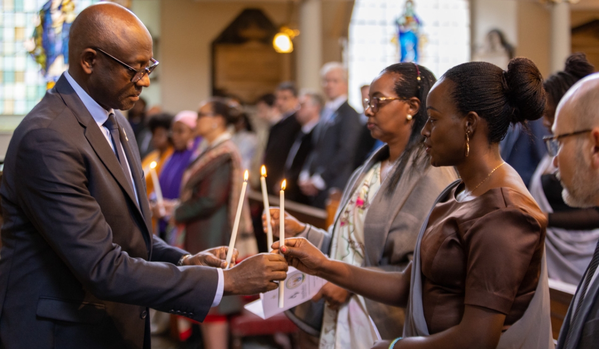 Rwanda’s High Commissioner to the UK, Johnston Busingye, and other Rwandans at the event to mark the 29th Commemoration of the 1994 Genocide against the Tutsi, on Wednesday, April 12, at St Marylebone Parish in London.