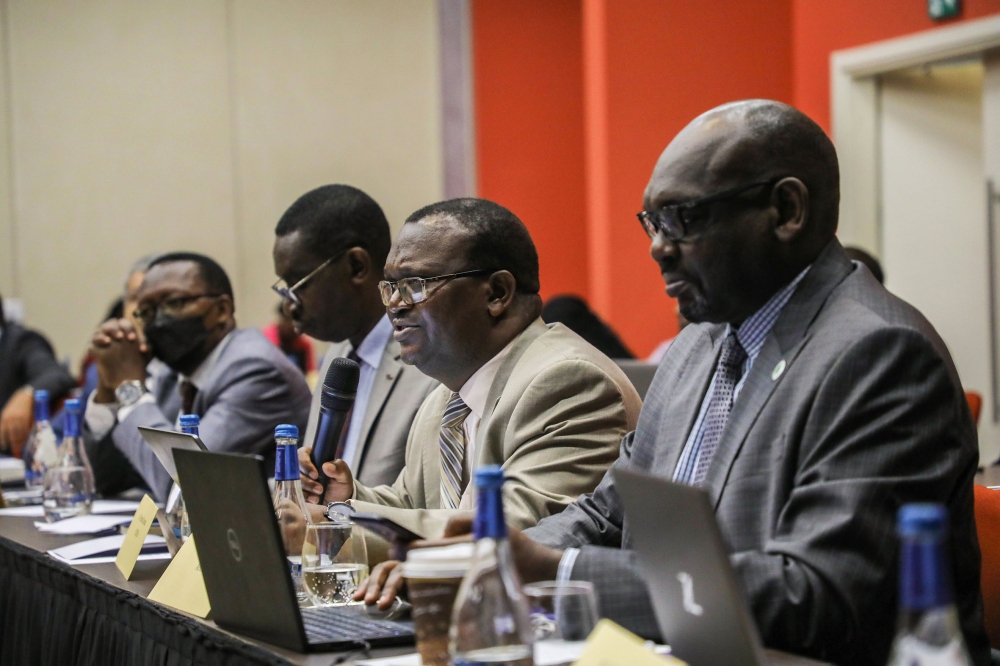 Bernard Dzawanda, Senior Transport Economist with COMESA (2nd right), speaks on Day 1 of the three-day workshop on operationalisation of the Single African Air Transport Market, in Kigali on Monday, August 29. The workshop is set to deliberate on findings of a study on training needs analysis in the continental air transport sector. Photo: Dan Nsengiyumva.