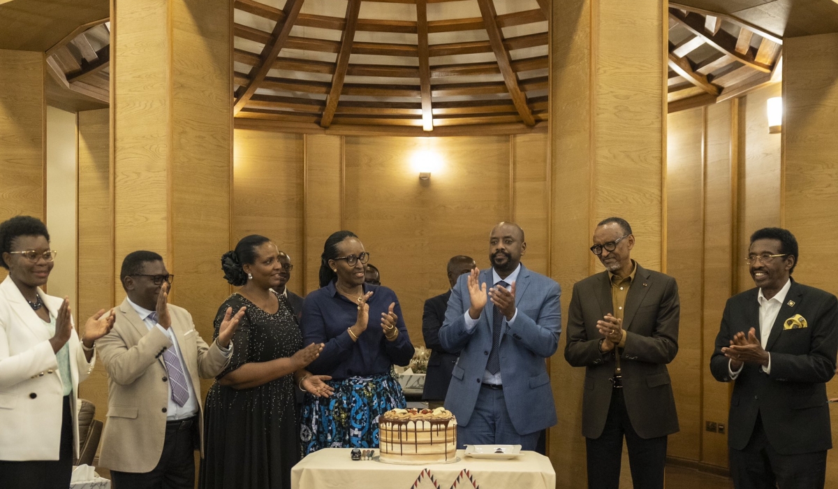 President Paul Kagame and First Lady Jeannette Kagame hosted Gen Muhoozi Kainerugaba and his delegation for his birthday celebration on Monday, April 24. Muhoozi, who is Uganda's senior presidential advisor in charge of special operations, previously announced on Twitter that he would celebrate his 49th birthday in Rwanda. ALSO READ: Rwandans, Ugandans attend ‘border reopening thanksgiving’ celebrations He landed in Kigali on April 23 with his delegation, which included Uganda’s Minister of Security Maj Gen Jim Muhwezi, Minister of Justice and Constitutional Affairs, Norbert Mao, Kitgum district woman MP, Lillian Aber and journalist and entrepreneur Andrew Mwenda, among others. “You can have peace but at the same time you may not be friends. We are friends and we are at peace.” President Kagame | Birthday Celebration for General Muhoozi Kainerugaba. pic.twitter.com/HBckbbAH97 — Presidency | Rwanda (@UrugwiroVillage) April 25, 2023 Muhoozi’s trip comes just days after he hosted a thanksgiving event held in Kabale District in south western Uganda where citizens of both countries met to celebrate the resumption of vibrant activity at Gatuna border post. ALSO READ: Gatuna border fully reopens for ordinary passengers after 3 years Part of the activities included a friendly football game played between Kigezi Select and Gicumbi FC at Kigezi High School playground hosted in Kabale District. The game ended with a 4-2 score in favour of the Ugandan side. Dozens of musicians from both Rwanda and Uganda, including Massamba Intore, Bebe Cool, Spice Diana, performed at the concert. President Kagame attended Muhoozi’s 48th birthday last year in Uganda in an event that was hosted by President Yoweri Museveni.