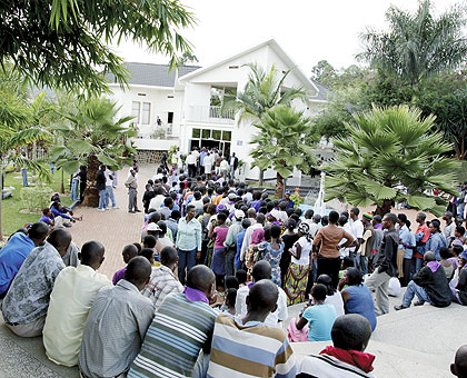 Mourners at the Kigali Memorial Centre yesterday. Rwandans are marking a week-long commemoration period, during which many people visit Genocide memorial sites to pay tribute to the victims of the 1994 Genocide against the Tutsi. The New Times / Timothy