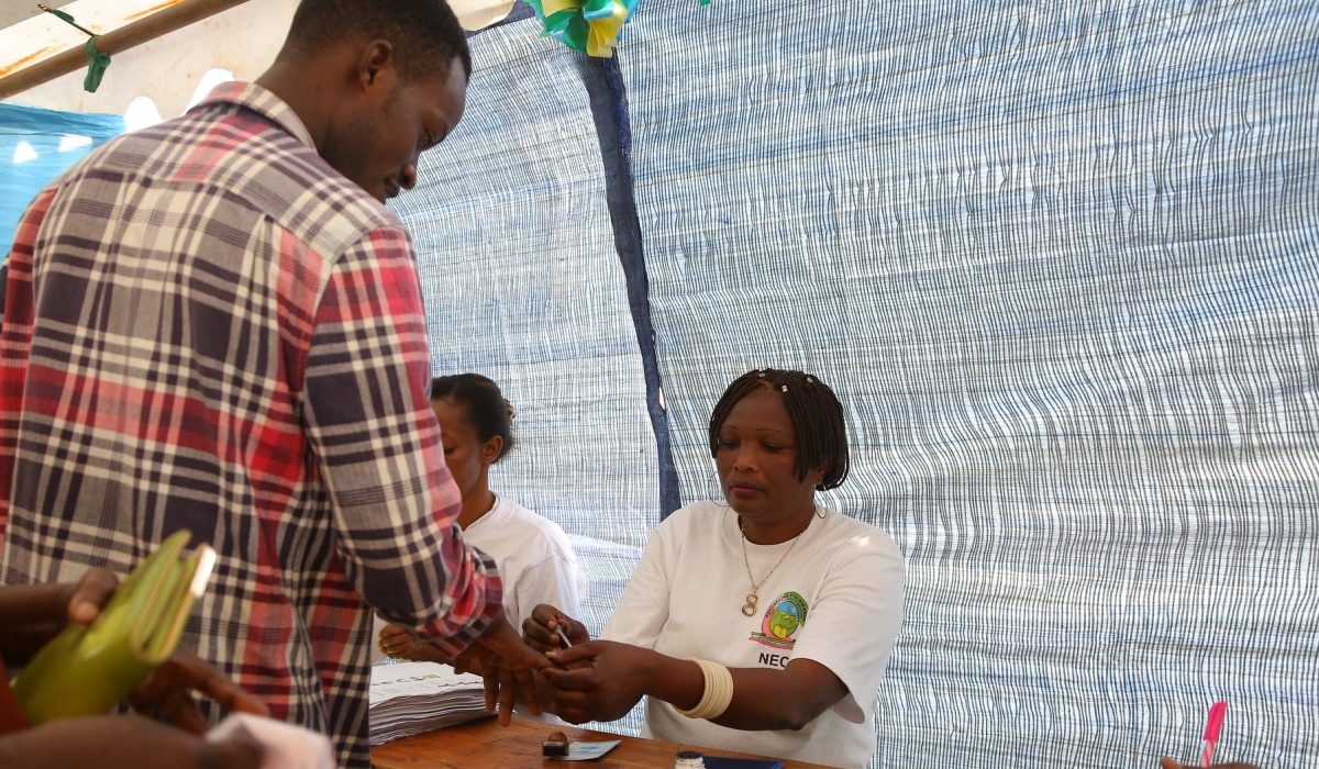 A voter talks to the electoral commission's volunteers before casting his vote during parliamentary elections in 2018. MPs adopted some revisions like the synchronization of presidential and parliamentary elections.