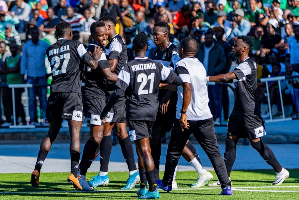 APR FC players celebrate Christian Ishimwe's goal as Army side came from a goal down to beat Kiyovu Sports 2-1 at the Kigali Pele Stadium on Sunday, May 14. Courtesy