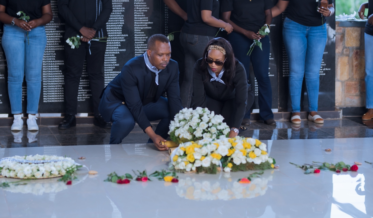 NCBA Rwanda CEO, Lina Higiro, and NCBA Rwanda Head of Operations, Christian Dingida, lay a wreath to pay respects to the victims of the 1994 genocide against the Tutsi at Ntarama Genocide Memorial, May 19, 2023 (courtesy)