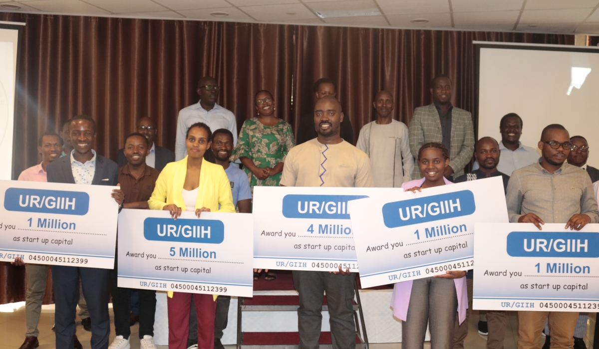 After a year-long business incubation program at the University of Rwanda’s Grid Innovation and Incubation Hub, five innovators whose innovations were found promising were on May 19 funded to help implement their innovations. This is the second cohort of GIIH’s Business and Incubation Program. The Business Incubation Program (BIP) is a program run by the Grid Innovation and Incubation Hub operating at UR’s African Centre of Excellence in Energy for Sustainable Development (ACE-ESD). Its objective is to build a bridge between universities and various sectors of the economy in order to make research relevant to emerging and well-known issues that are still difficult to solve, and to support innovation and entrepreneurship through incubator and accelerator programs. The selection of five promising innovators is part of the rigorous process of identifying the most promising ventures, both in terms of impact and implementation potential, to be enrolled in GIIH venture startups. Throughout the year, incubates were paired with technical supervisors for mentorship. The innovative project which scooped the grand prize, Rwf5 million, is ‘Teaching Materials for Quality Education,’ a machine which produces teaching materials for nursery schools to ease teaching and ensure quality of education. “The funding will help me improve the capacity of my machine to be able to produce a set of materials in few seconds and make it electrical”, says Josee Ishimwe, the innovator. The Principal of the College of Science and Technology Dr. Ignace Gatare, commended all the innovators for championing solutions to existing challenges and encouraged those whose ideas were not selected to never give up. “Challenges are always seen as an opportunity. If, for each challenge, we could have an innovator, who might find it as an opportunity and find a solution, this would be much appreciated,” Gatare said, praising all partners who are consistently working with the Hub to make sure unique business concepts are developed and prepared for the market. The purpose of the Business Incubation Program is to discover, nurture, and potentially fund exceptional youths’ business ideas that are innovative, scalable, and have huge transformational potential, making them financially viable, freestanding and competitive in the open market. Grid Innovation and Incubation Hub (GIIH) is a research, innovation and entrepreneurship initiative hosted by the African Centre of Excellence in Energy and Sustainable Development (ACEESD) in the College of Science and Technology (CST) at the University of Rwanda.