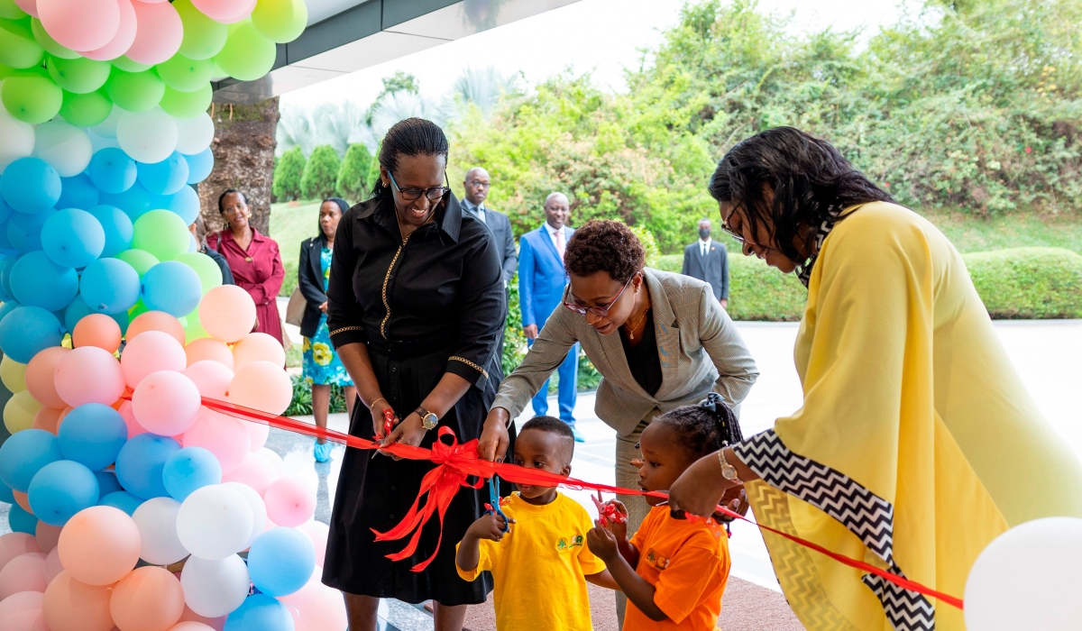First Lady Jeannette Kagame, on Thursday September 1, officially inaugurated EZA - Urugwiro ECD centre, located in Village Urugwiro in Kacyiru. Jointly established in 2021 by the Office of the President, Imbuto Foundation and Unity Club, the centre aims to provide day care services for children below 3 years of age. It started offering services to employees of Urugwiro Village since 2021 and 17 children are graduating, joining nursery school in the next academic year. The centre offers day-care services to employees' children aged between three months and three years, to facilitate parents and especially new mothers, to practice exclusive breastfeeding even after their maternity leave. Eza – Urugwiro ECD’s team includes seven dedicated caregivers, a nurse and a coordinator. Early Childhood Development (ECD) is a formative and critical phase of rapid growth. It spans from conception to 6 years of age. During this period, children need adequate nutrition, appropriate healthcare, protection, play-based learning and brain stimulation. It is in this regard that the centre was established so that parents can leave their children in safe hands of nurturing caregivers, help mothers to practice exclusive breastfeeding after their maternity leave, and provide means for working parents to stabilise the work-life balance among other purposes. The event was also attended by Judith Uwizeye, Minister in the Office of the President, representing the office, Jeanette Bayisenge, Minister of Gender and Family Promotion, Minister for Public Service and Labour Fanfan Rwanyindo and Clare Akamanzi CEO Rwanda Development Board. Others included,City of Kigali Mayor Pudence Rubingisa, Nadine Umutoni, the Director-General of the National Child Development Agency, Julianna Lindsey, the UNICEF Representative in Rwanda and Chairperson of the Rwanda Private Sector Federation, Robert Bafakulera, among others.